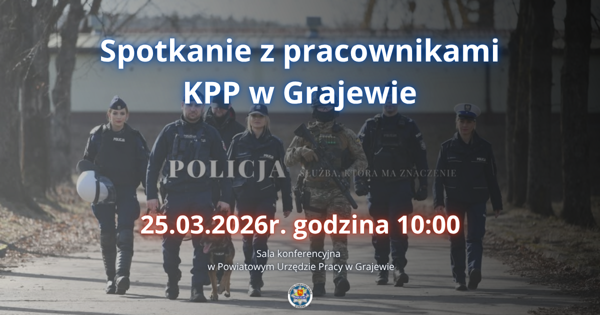Zapraszamy na spotkanie z pracownikami Komendy Powiatowej Policji w Grajewie, poświęcone pracy w Policji. Spotkanie odbędzie się 25 marca 2026 r. o godzinie 10:00 w sali...